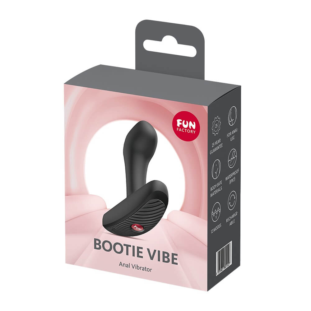 Der wiederaufladbare Analvibrator BOOTIE VIBE von Fun Factory verwöhnt tiefgehend mit intensiven Vibrationen bis zur Prostata. Zusätzlich eignet sich der kompakte Vibrator auch für die vaginale Anwendung mit Stimulation der G-Zone. Das seidige Silikon und die Flexibilität gewährleisten bestes Handling, volle Bewegungsfreiheit und anhaltenden Komfort. Das ergonomische Design passt sich den natürlichen Konturen des Körpers an für einen sicheren, bequemen Sitz. Dabei verhindert die breite Basis ein zu tiefes Hineinrutschen des Analvibrators.