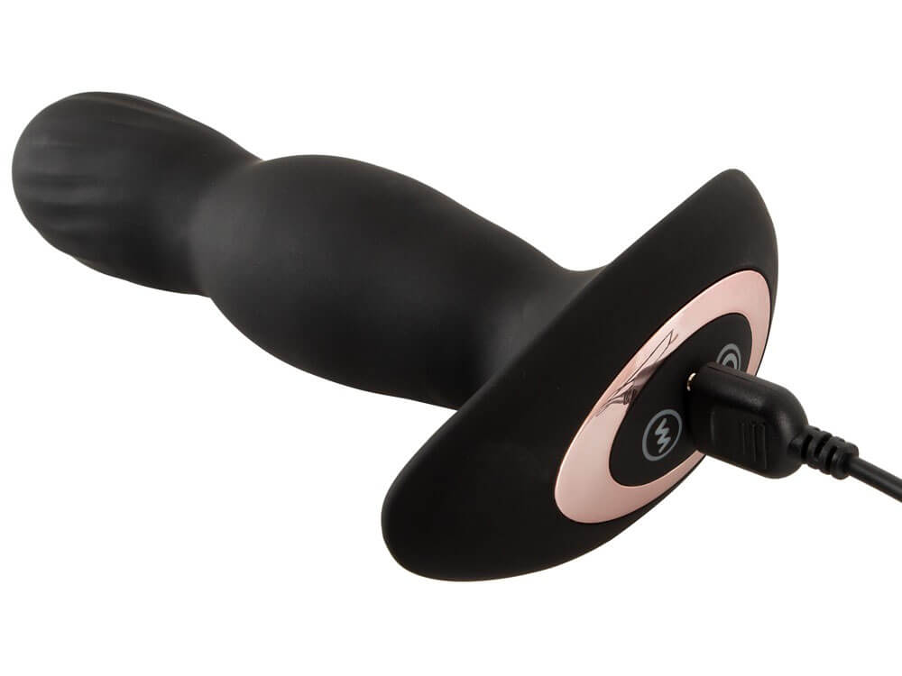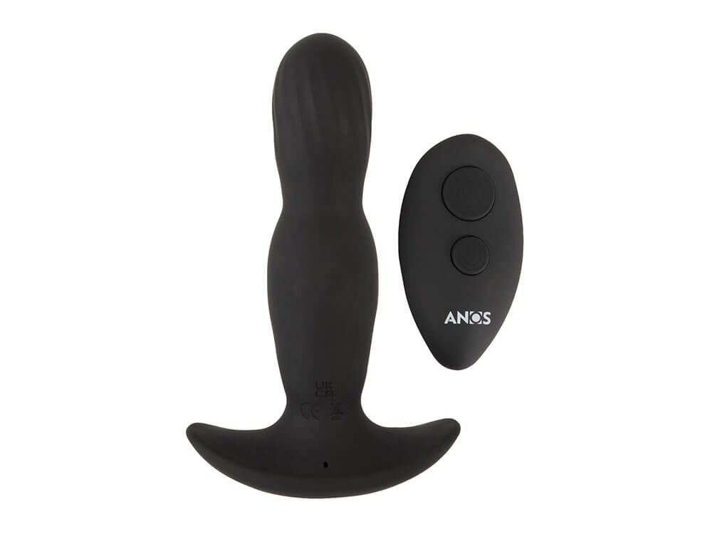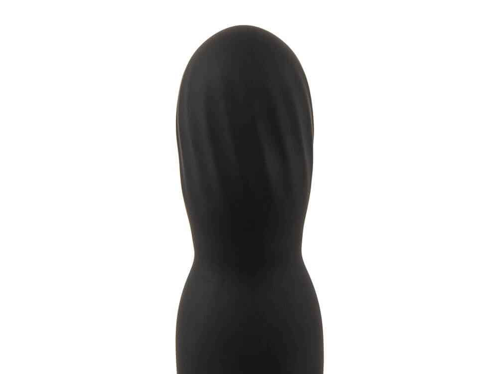 Vibro-Analplug RC Inflatable Massager von ANOS für ausfüllende Anal-Stimulationen mit abgerundeter gerillter Spitze, die sich dick und prall aufpumpen lässt. Die Vibrationen sind beim Tragen des Plugs auch am Perineum stark spürbar.