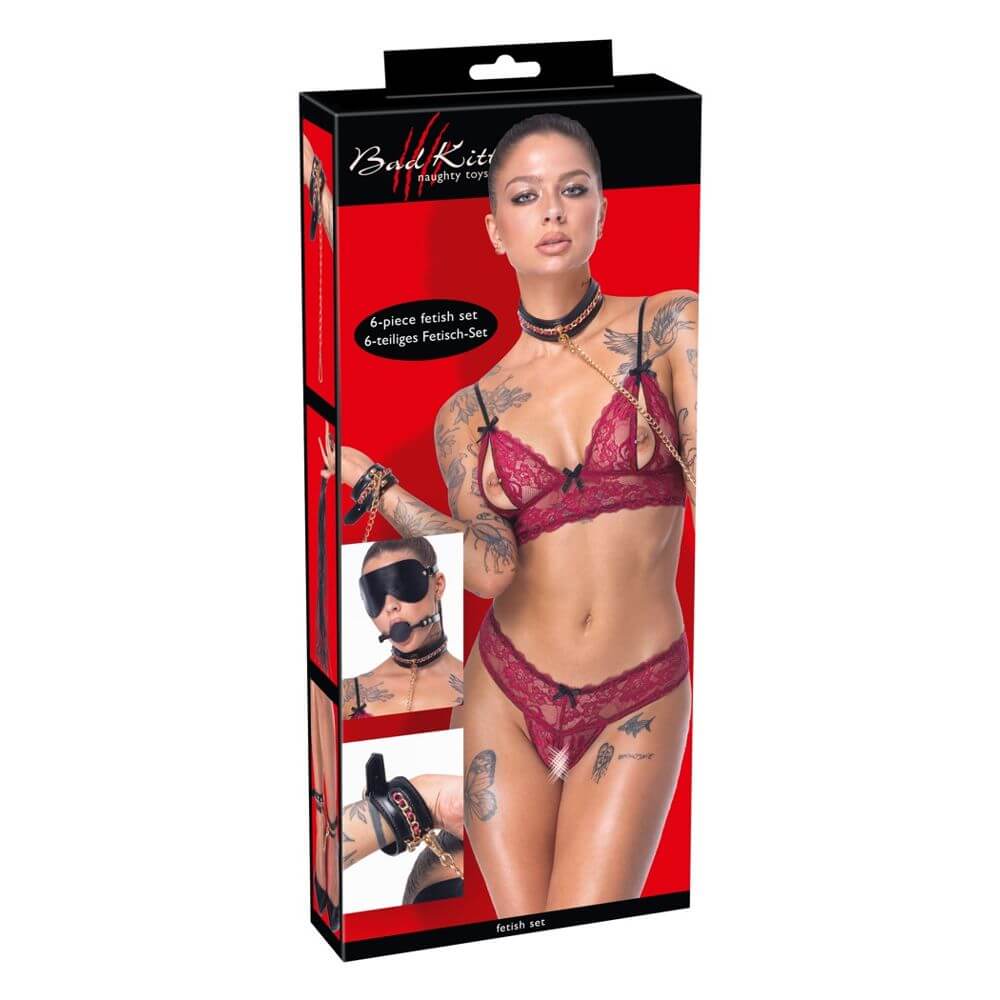 Bad Kitty 6-teiliges Bondage-Set aus schwarzem stilvollen Lederimitat