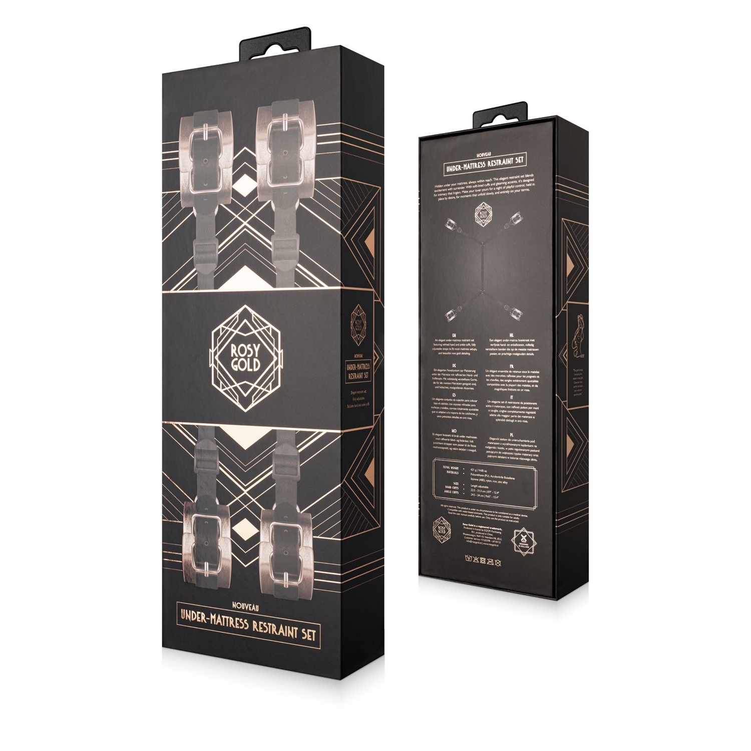 Das Rosy Gold Under-Mattress Restraint Set ist die elegante und diskrete Lösung für Paare, die ihre intimsten Momente mit Vertrauen, Spannung und Stil bereichern möchten.