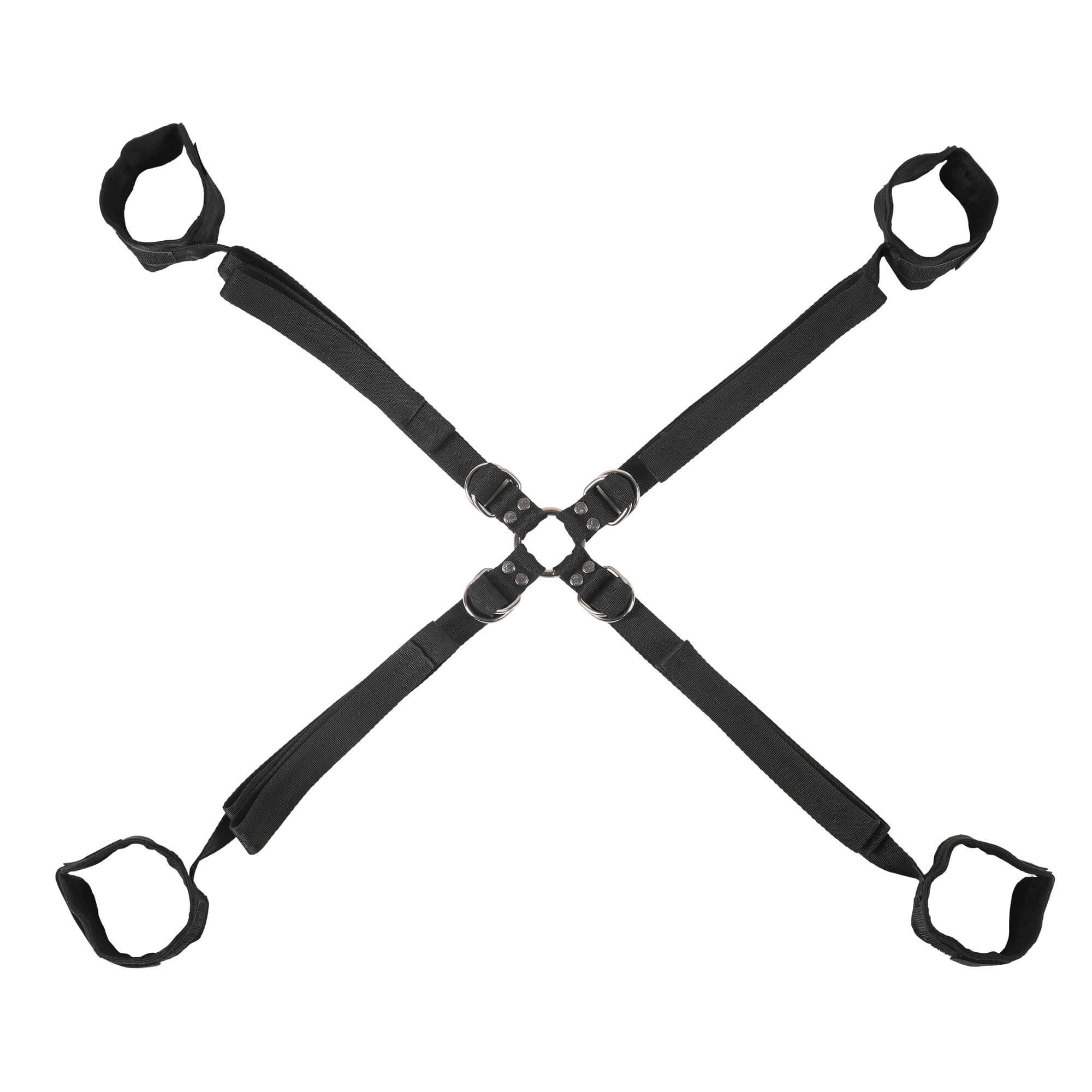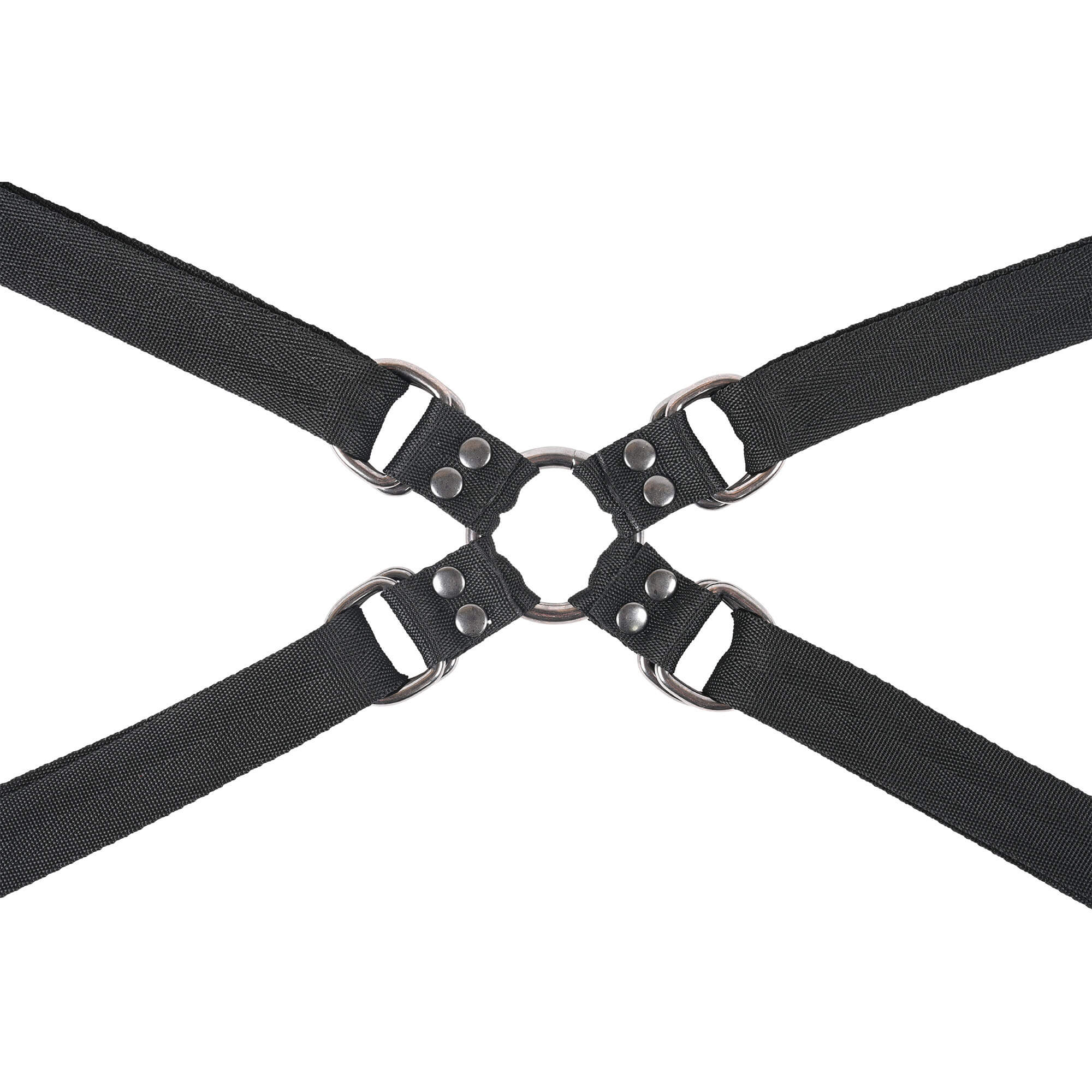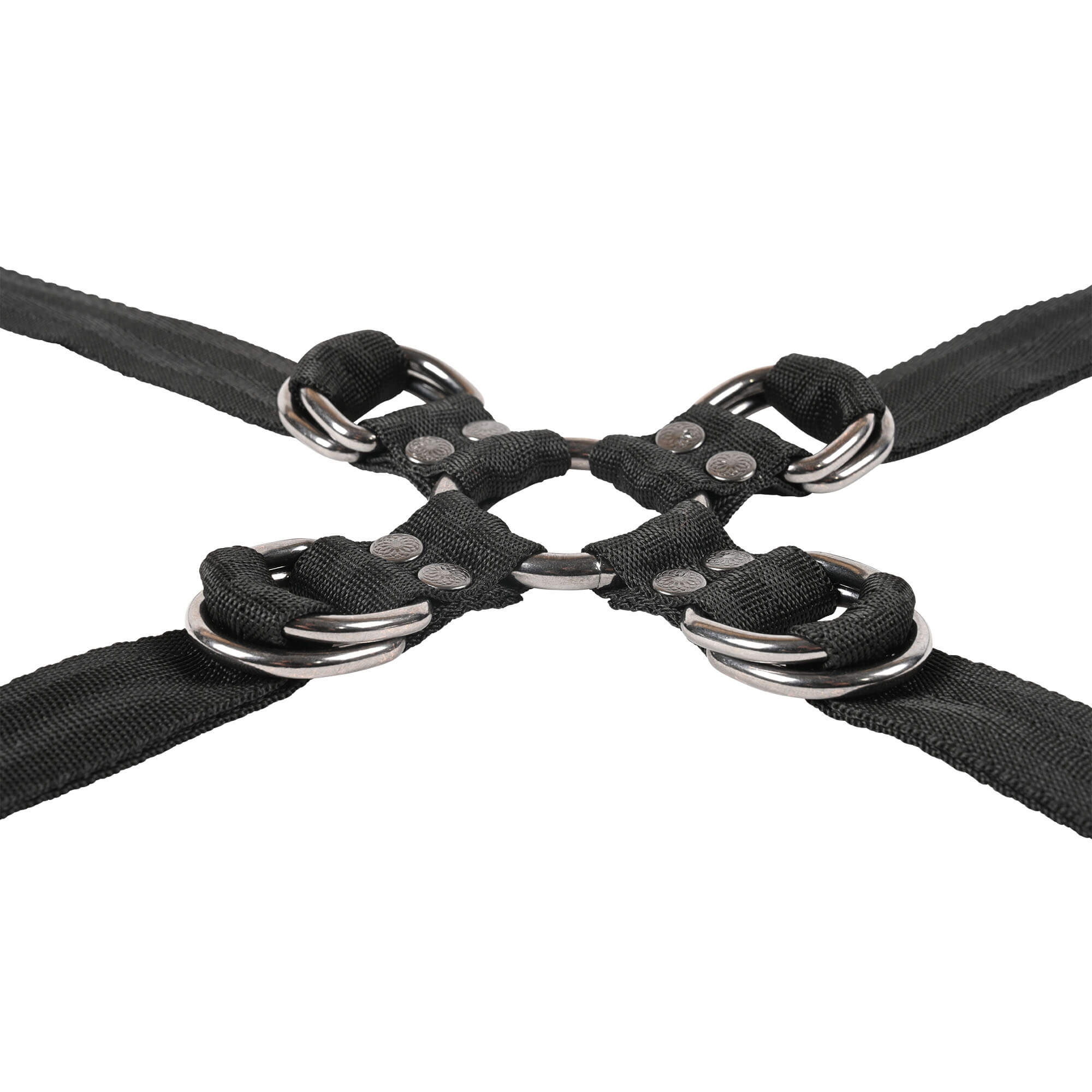 Ob Sie sich zu leichtem Spiel verführen lassen oder für intensiveren Spiel fest zuschnallen möchten – die 45 Zoll (ca. 114 cm) langen Riemen gleiten mühelos durch doppelte D-Ringe für eine sichere yet flexible Passform. Der zentrale Verbinder, ausgestattet mit 8 D-Ringen und 1 O-Ring, ermöglicht grenzenlose Konfigurationsmöglichkeiten und lässt Sie die Grenzen Ihres Partners – in seinem eigenen Tempo – erkunden.