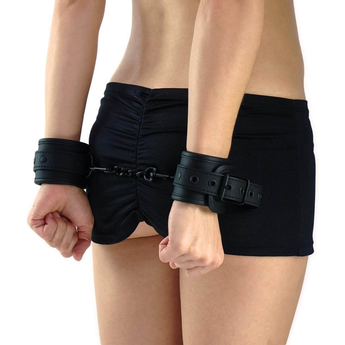 Schwarze, nickelfreie Metallbeschläge und stabile Karabiner sorgen für zusätzliche Sicherheit und ermöglichen vielseitige Kombinationen mit weiterem Bondage-Zubehör wie Ketten oder Spreizstangen.