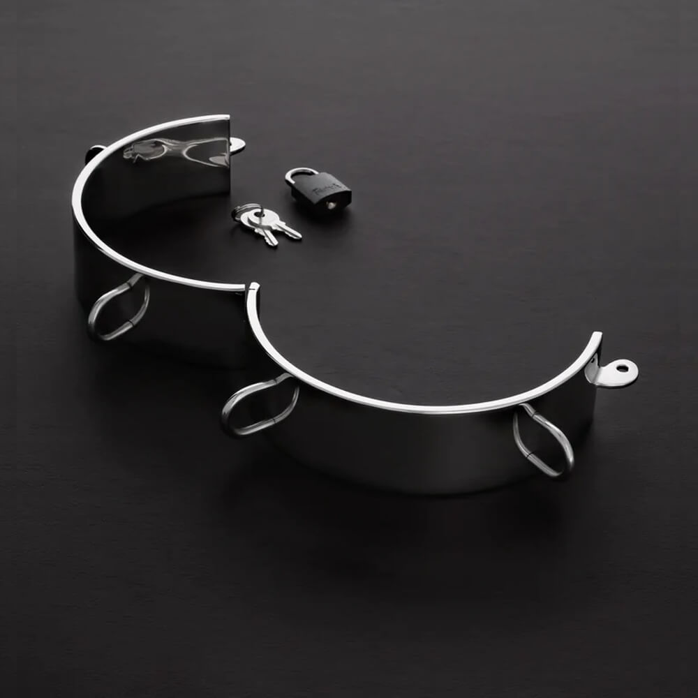 Der hochglanzpolierte Kragen schmiegt sich wie ein schweres Schmuckstück um den Hals und erinnert bei jeder Bewegung an die getroffene Vereinbarung zwischen Dom und Sub. Das satte Gewicht von fast 700 g erzeugt einen konstanten Druck, der Präsenz und Unterwerfung gleichzeitig spürbar macht, ideal für alle, die das Gefühl von „gehalten werden“ lieben.