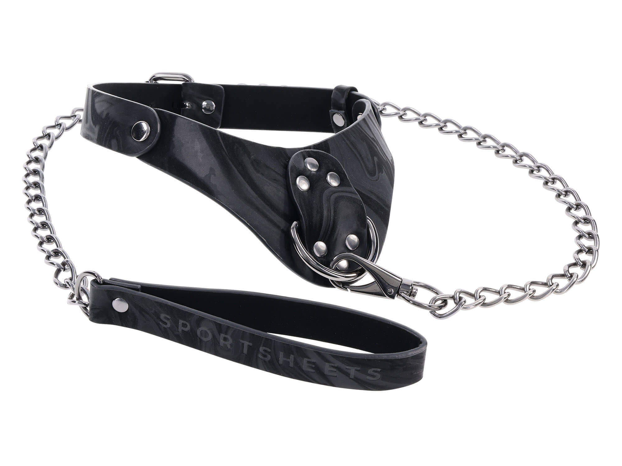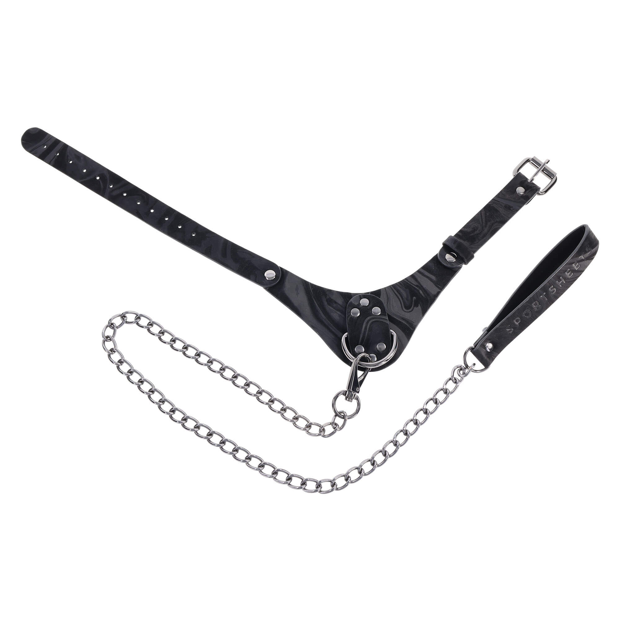 Treten Sie ein in die Welt der raffinierten Zurückhaltung mit dem Velvet Noir Halsband & Leine von Sportsheets.