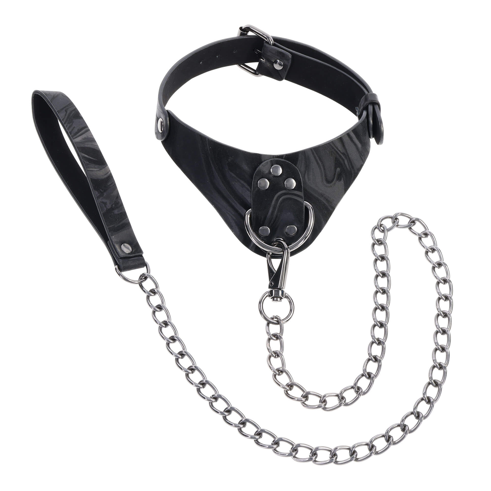 Dieses Halsband wurde entwickelt, um Eleganz mit Funktionalität zu verbinden. Es umschließt den Hals mit einem luxuriösen, marmorierten Material, das ebenso faszinierend wie bequem ist.