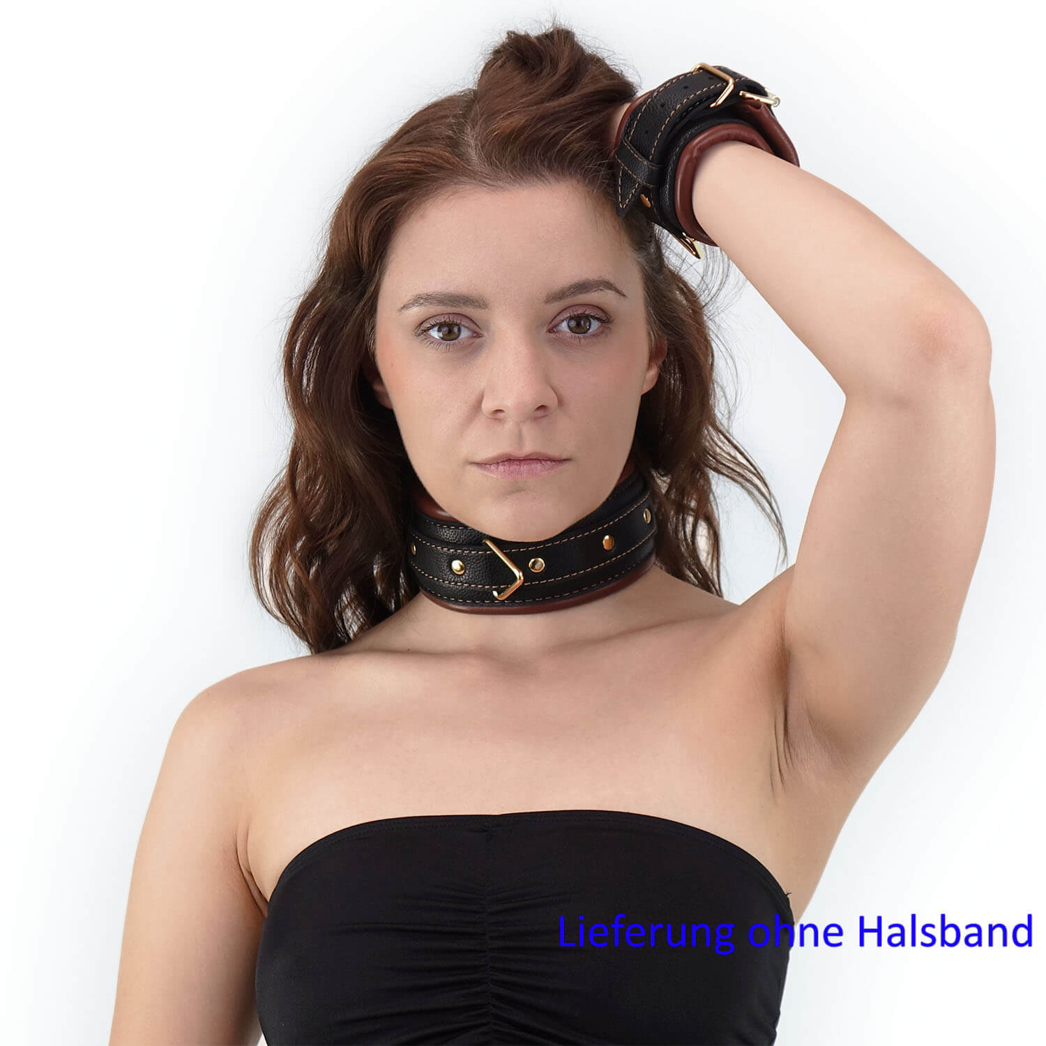 Der stylische schwarz-braune Look in Kombination mit den goldenen Details verleiht diesem Fesseln eine edle Note. Die Lieferung umfasst zwei Handfesseln und eine Verbindungskette, um die Fesseln miteinander zu verbinden.