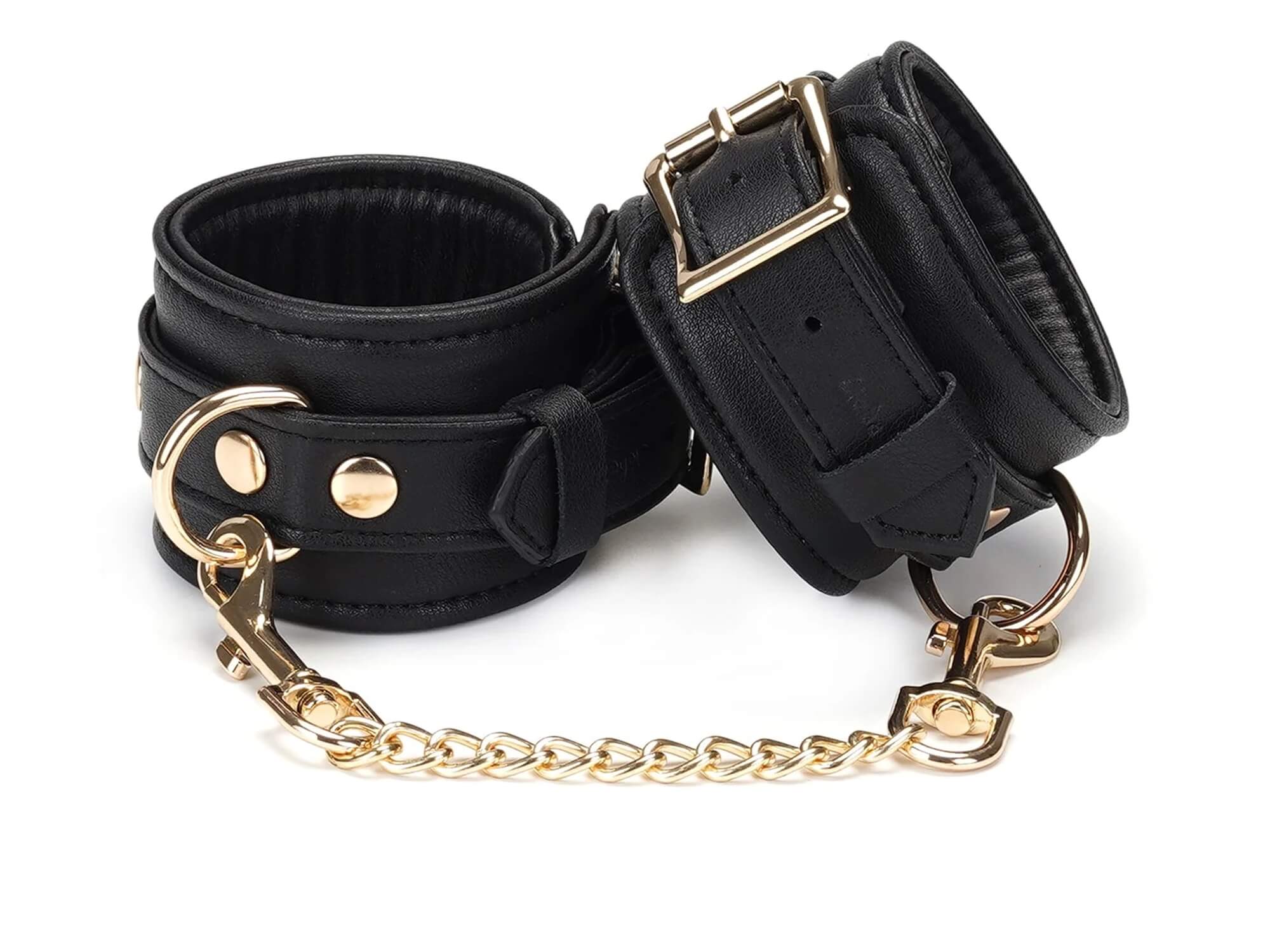 Die weich gepolsterte Innenseite sorgt für angenehmen Tragekomfort, während die stabile Verarbeitung und das spürbare Eigengewicht von 295 g absolute Wertigkeit vermitteln. Die goldene Verbindungskette mit einer Länge von 22,5 cm hält die Handgelenke kontrolliert in Position, nah genug für Spannung, weit genug für gezielte Führung.