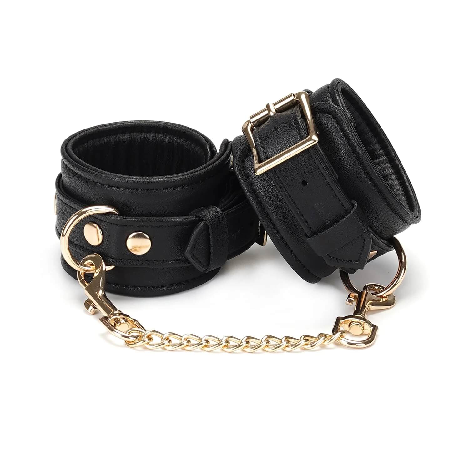 Die Dark Secret Leder-Handfesseln von Liebe Seele sind ein Statement kompromissloser Dominanz, kraftvoll, elegant und kompromisslos hochwertig verarbeitet. Gefertigt aus feinstem Rindsleder und veredelt mit glänzender goldfarbener Hardware, vereinen sie Ästhetik und Funktion auf höchstem Niveau.