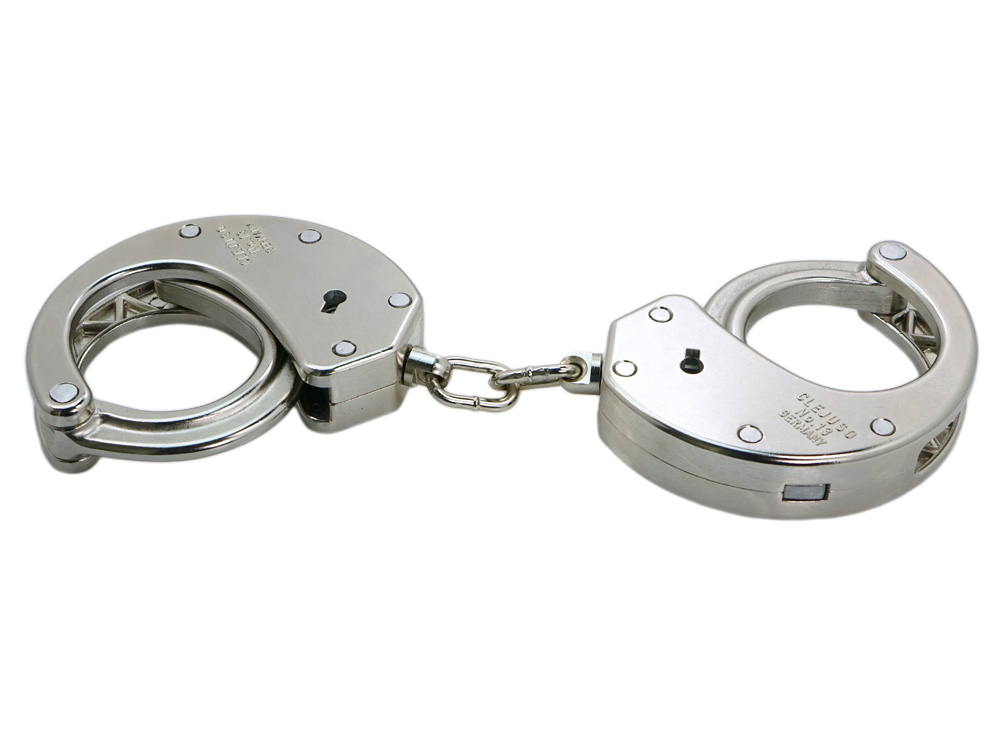 Handschellen mit beeindruckendem Gewicht und einer sicheren Stärke von 24 mm, schwere Ausführung mit Schnellverriegelung, inkl. 2 Schlüssel.