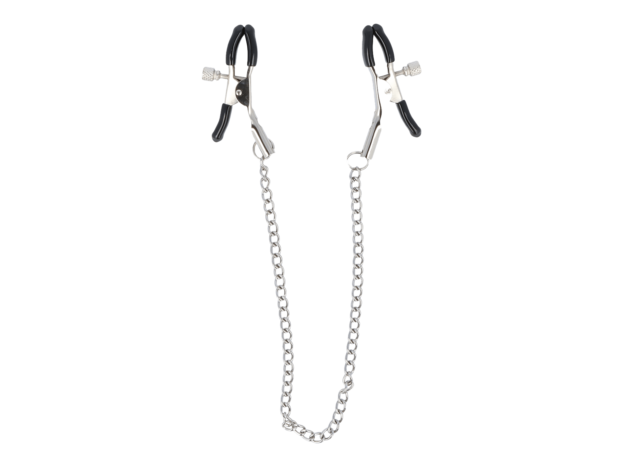 Ihr stilvoll verführerisches Design setzt Deine Brustpartie gekonnt in Szene und macht die Klemmen zu einem aufregenden visuellen Akzent während des Spiels. Diese Klemmen sind so gestaltet, dass sie Ihren Vorlieben gerecht werden und mit einer Kette versehen sind, die sie miteinander verbindet.