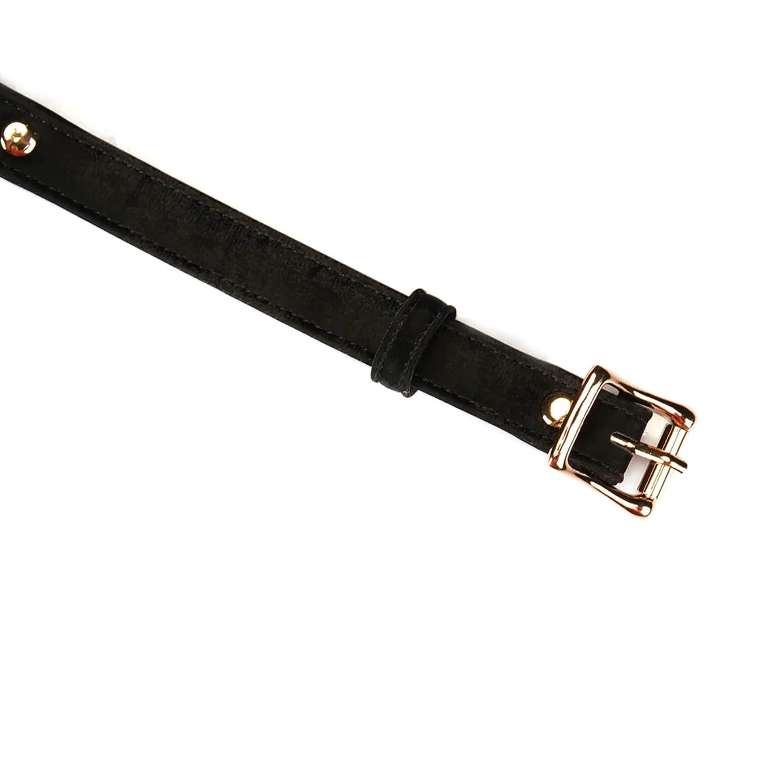 Das verstellbare Band aus edlem veganem Leder bietet eine perfekte Passform und lässt sich präzise anlegen. Die robuste, goldfarbene Schnalle verleihen nicht nur Stabilität, sondern auch eine luxuriöse Note, die die Boudoir Amor Kollektion so besonders macht.