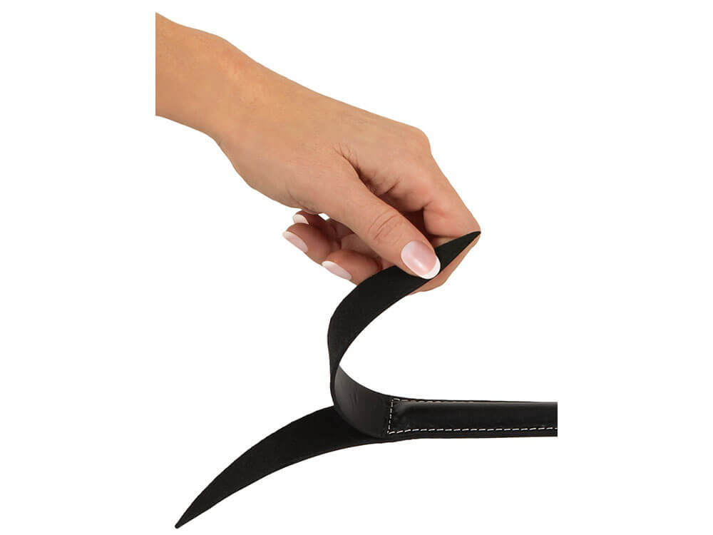 Die in sich gedrehte Ledergerte eignet sich perfekt fürs präzise Schlagen, wobei die doppelte Schlagspitze wunderbar geräuschvoll zischt und klatscht.