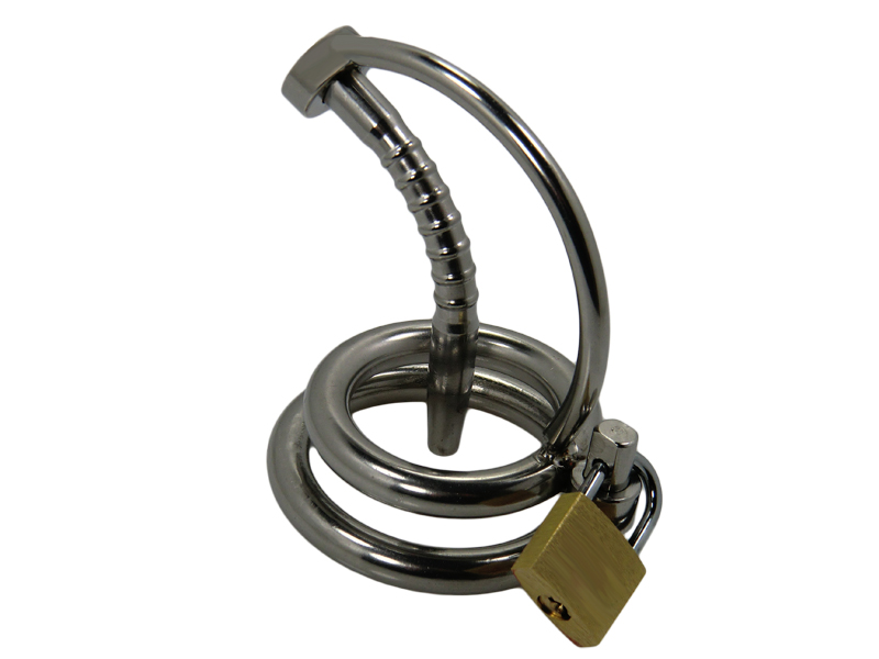 Der Penisplug ist innen hohl, somit ist auch der Gang zur Toilette für den Träger dieser Keuschheitsschelle möglich.