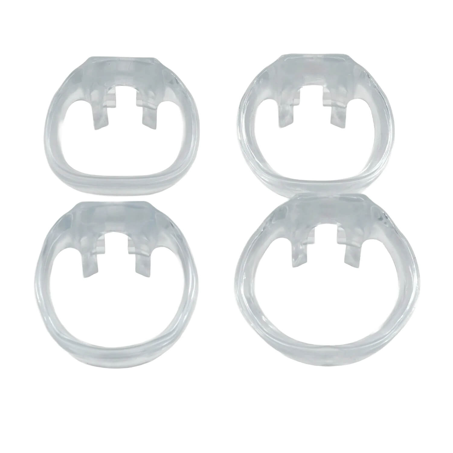Vier verschiedene Ringgrößen sorgen für einen individuellen, fluchtsicheren Sitz. Das stabile Metall-Schloss mit zwei Schlüsseln übergibt die volle Macht über Lust und Erlösung an den Keyholder. Das glatte PVC fühlt sich angenehm an und eignet sich hervorragend für längeres Tragen.