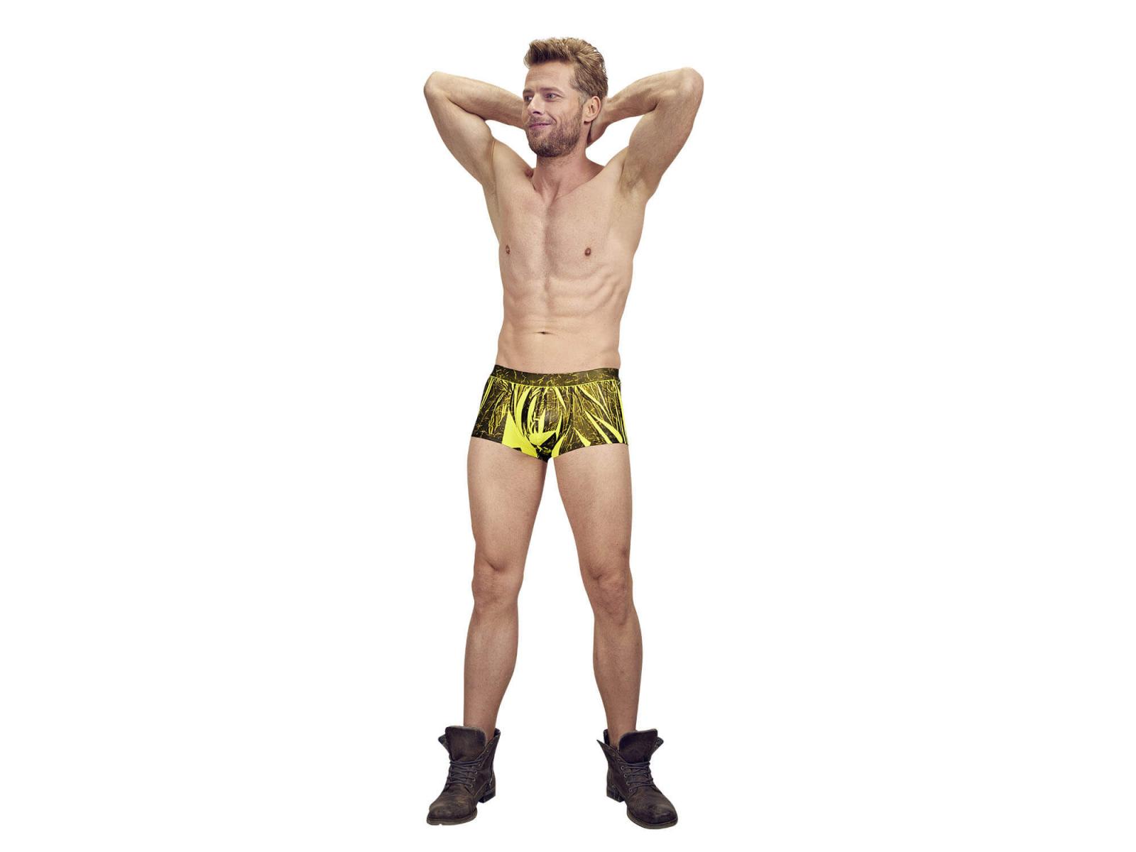 Knapp geschnittene Pants in leuchtendem Neongelb mit modischem schwarzen Print. Fantastisch elastisch und mit bezogenem Bundgummi für sehr angenehmen Tragekomfort und uneingeschränkte Bewegungsfreiheit.