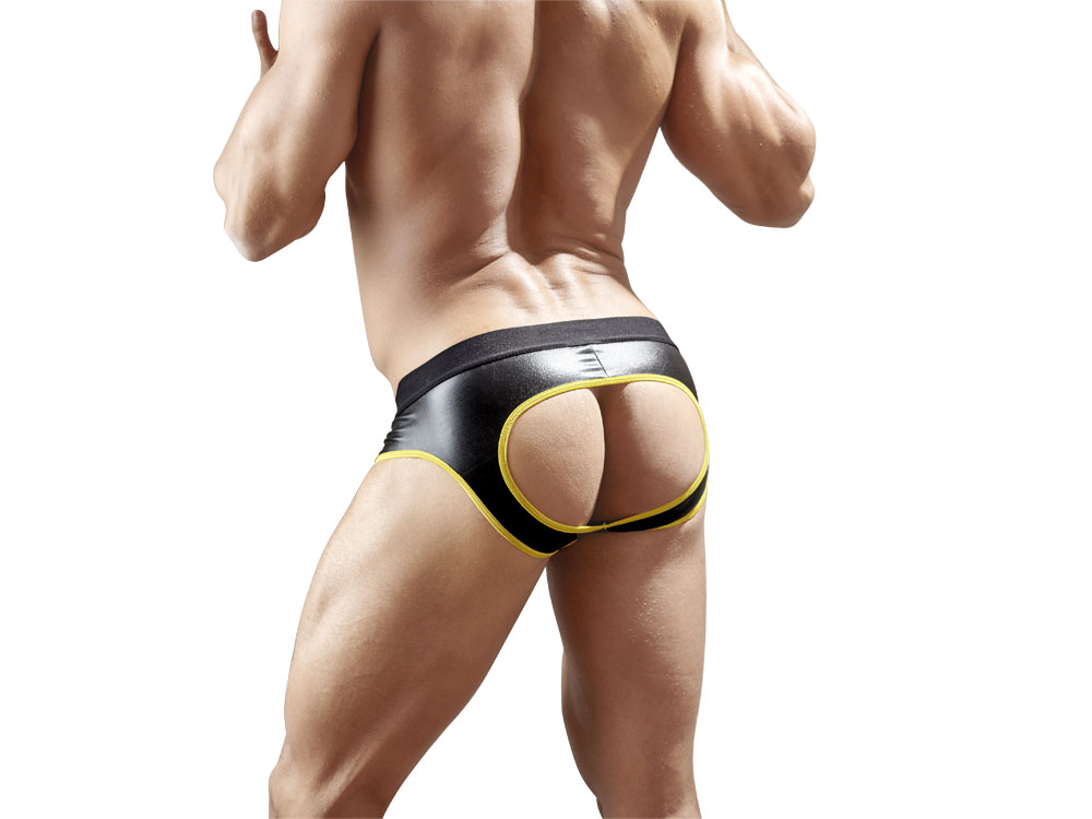 Svenjoyment Schwarz-gelber Jock in Neopren-Gummioptik