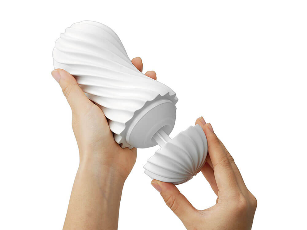 Wiederverwendbarer Masturbator Flex von Tenga mit integriertem Trockenständer. Lustvolle Innenstruktur mit vielen verschiedenen Rillen und Noppen, die den Penis fast genau so bearbeitet wie die Vaginalmuskulatur einer Frau.