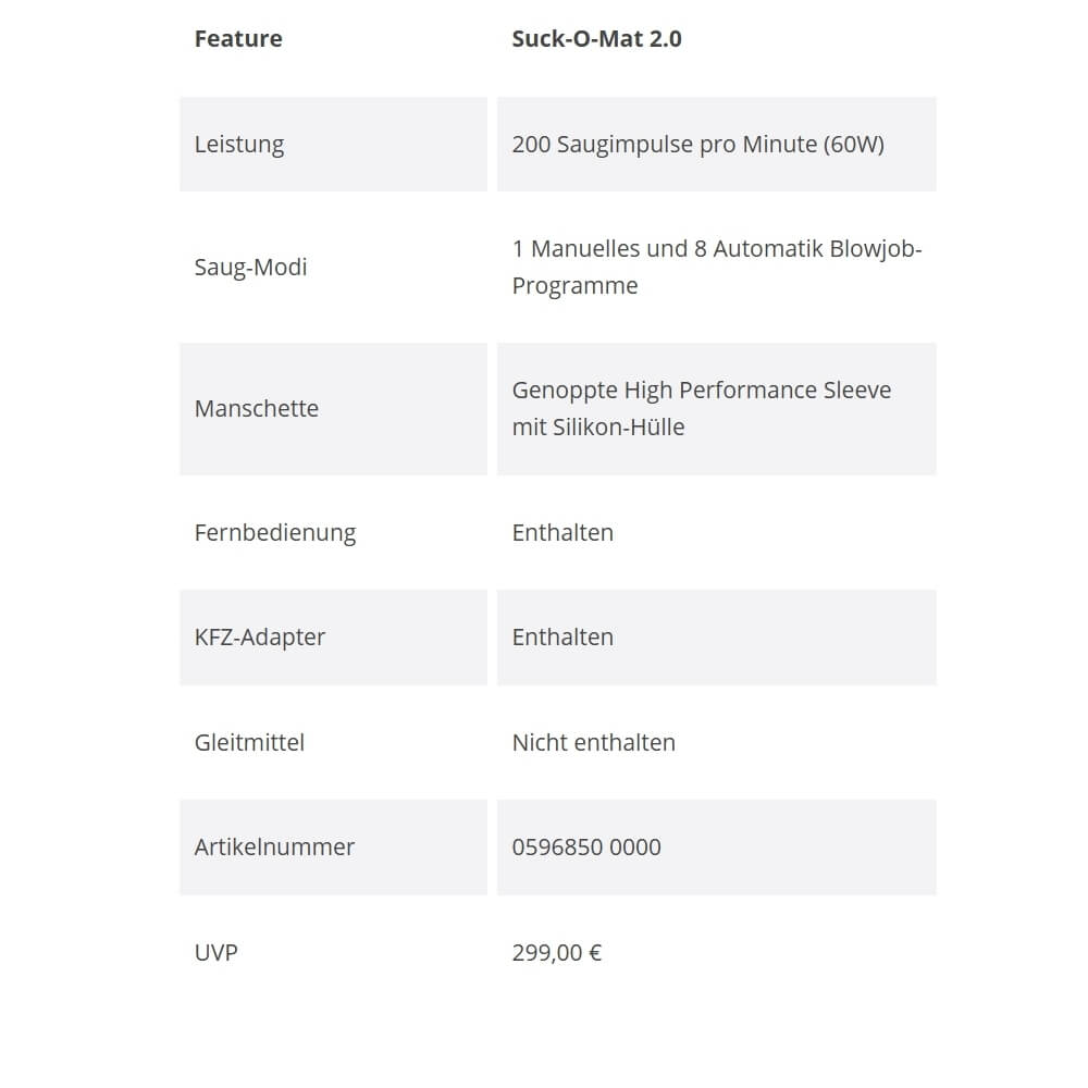 Der Suck-O-Mat 2.0 ist viel mehr als ein Masturbator, er ist dein persönlicher Lust-Coach. Für Männer, die Qualität, Power und echten Genuss zu schätzen wissen. Ob zu Hause oder unterwegs, dieses Gerät bringt dich immer sicher ans Ziel: Intensive Orgasmen, wann immer du willst.