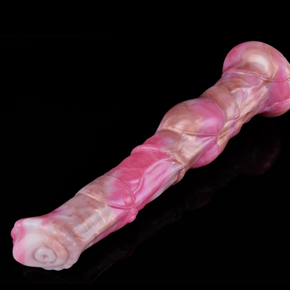 Der flexible lange Schaft ist mit verlockenden Details und zusätzlichen Hoden versehen. Hergestellt aus seidenweichem Liquid Silikon.