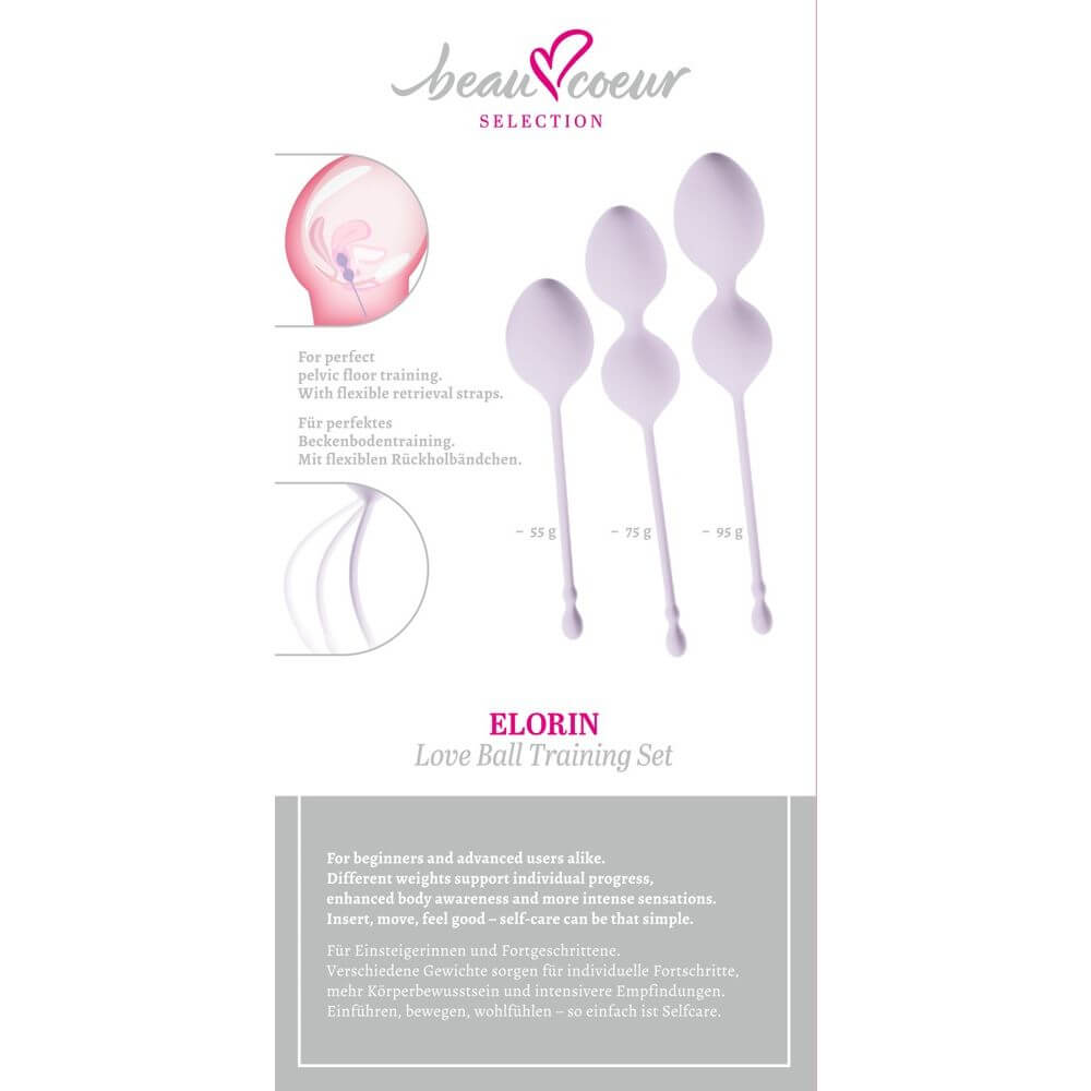 Das ELORIN Loveball Training Set von beau cœur bietet gleich 3 seidig glatte Liebeskugeln in verschiedenen Größen und Gewichten für individuelles Training, mehr Körperbewusstsein und intensivere Empfindungen. Einführen, bewegen, wohlfühlen – so einfach ist Selfcare!