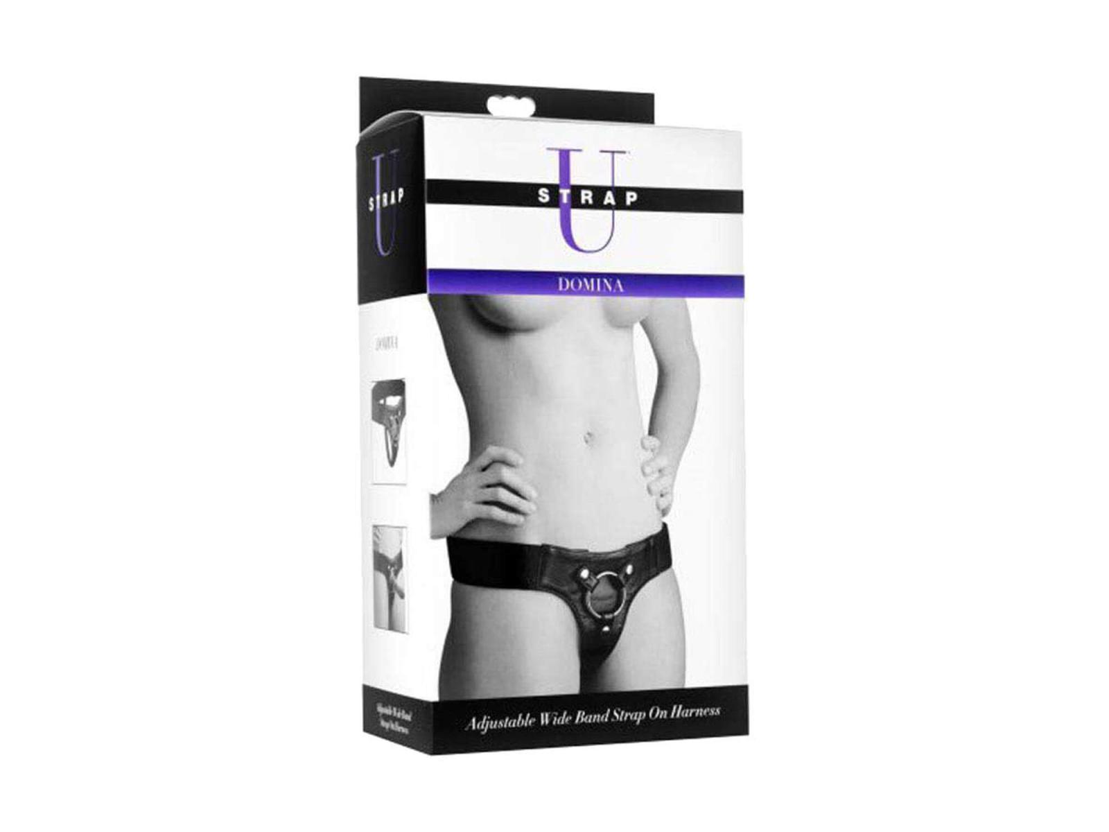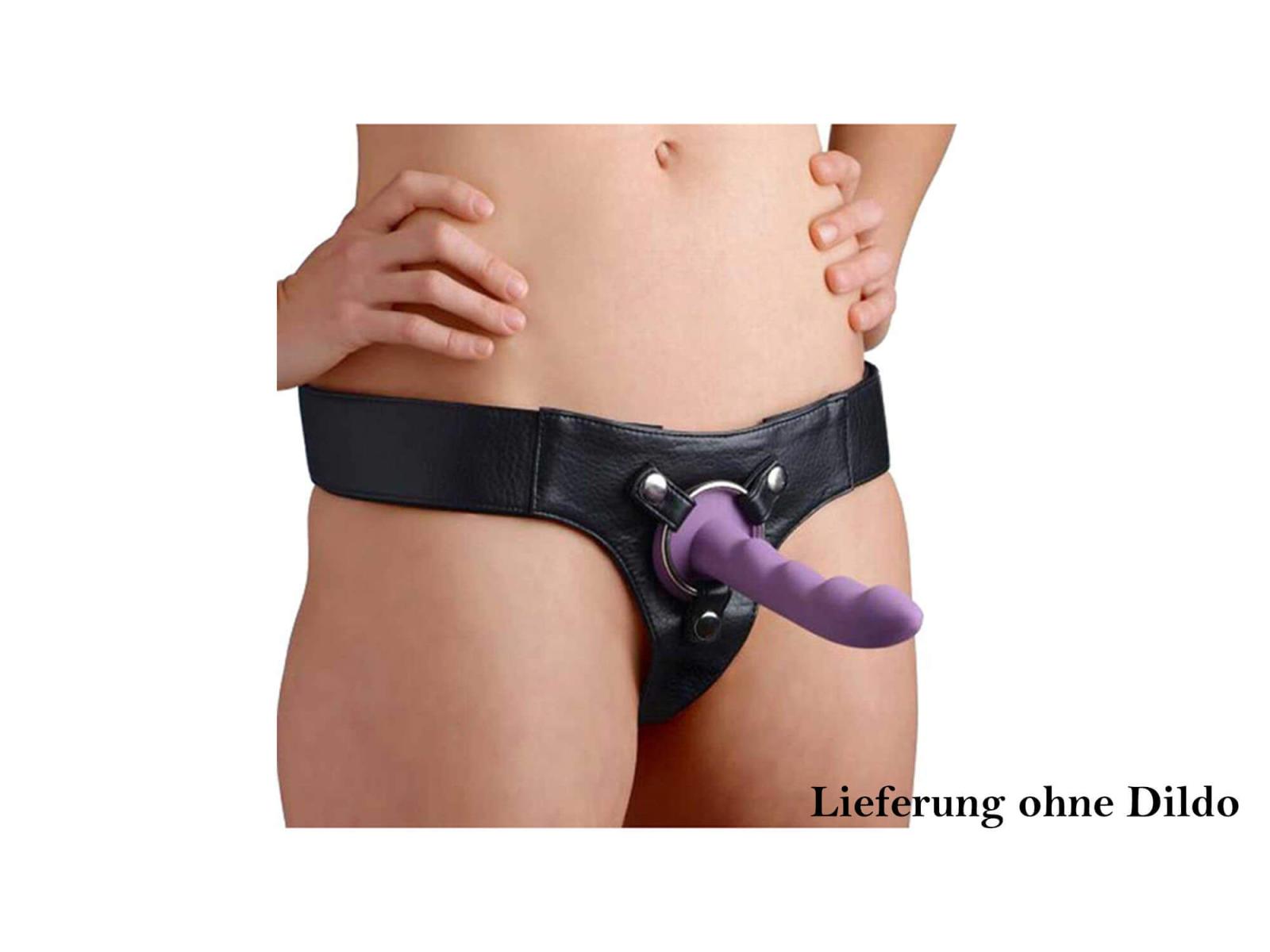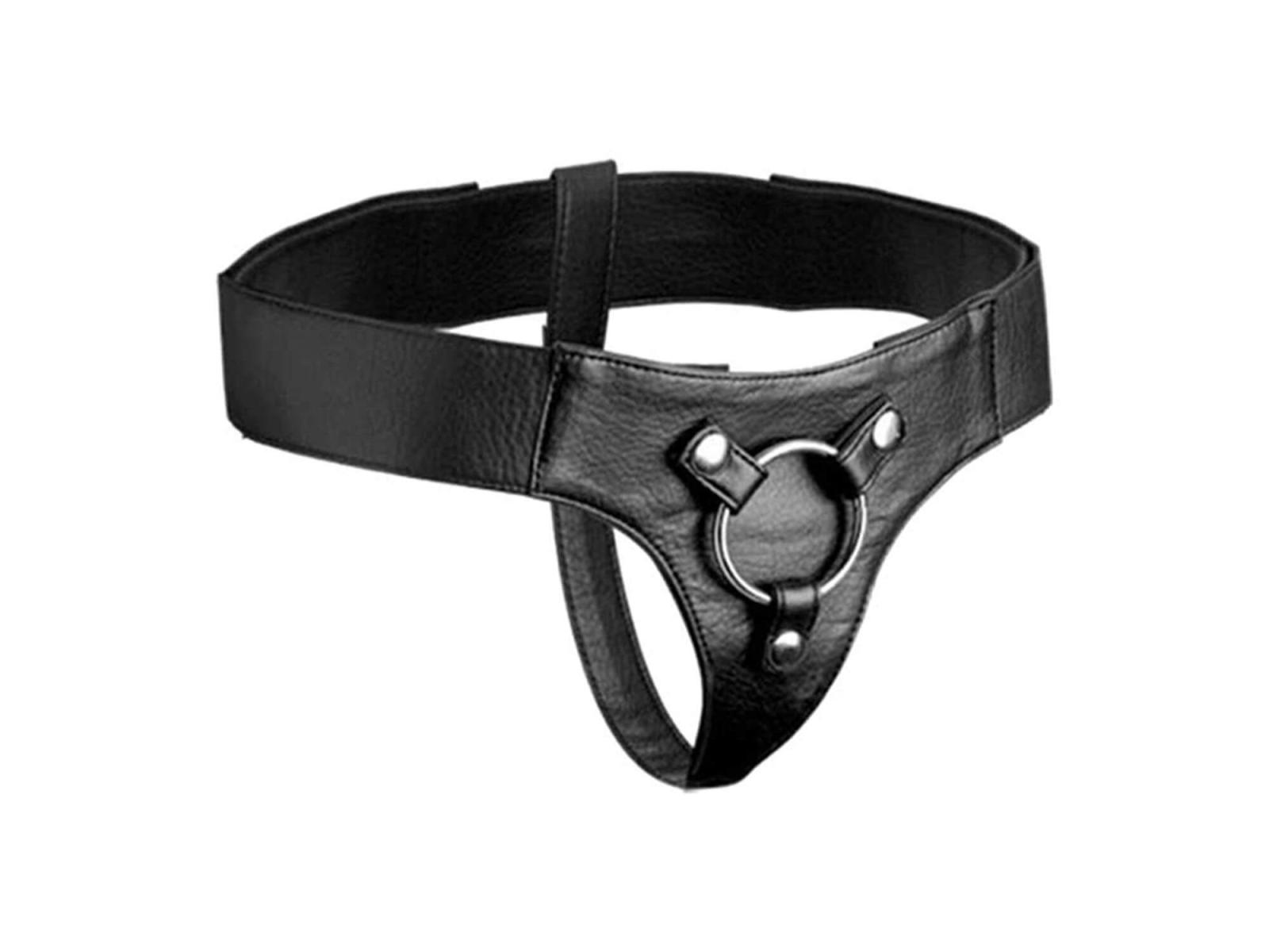 Leben Sie Ihre wildesten Fantasien mit diesem in der Größe verstellbaren schwarzen Strap-on Harness aus!