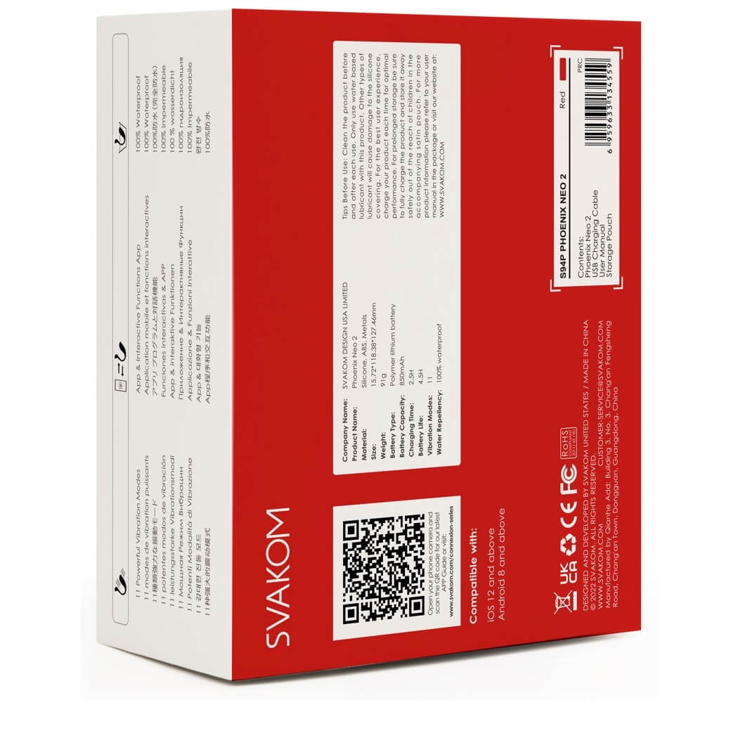 Mit der kostenlosen SVAKOM App oder der FeelConnect-3-App kannst du den Phoenix Neo 2 weltweit fernsteuern und aufregende Funktionen entdecken: Long Distance Control, interaktive 2D-Videos oder die Webcam-Integration für ein noch persönlicheres Erlebnis. Ideal für Paare in Fernbeziehungen oder alle, die Lust auf Abwechslung haben.