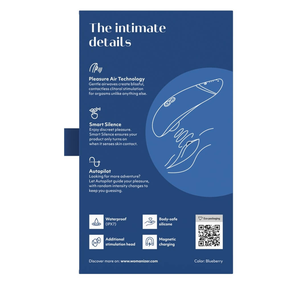 In edlem Blueberry-Blau präsentiert sich der Womanizer Premium 2 mit einem Design, das Eleganz und Funktion in perfekter Harmonie vereint. Die seidig-weiche Full Soft Touch-Oberfläche schmiegt sich an deine Hand, und an dein Verlangen. Diskret, edel, und absolut unwiderstehlich.