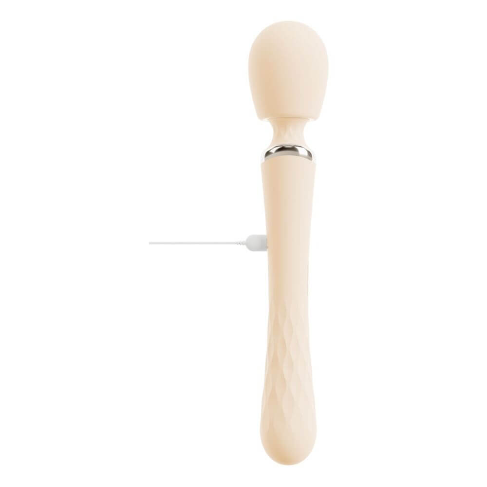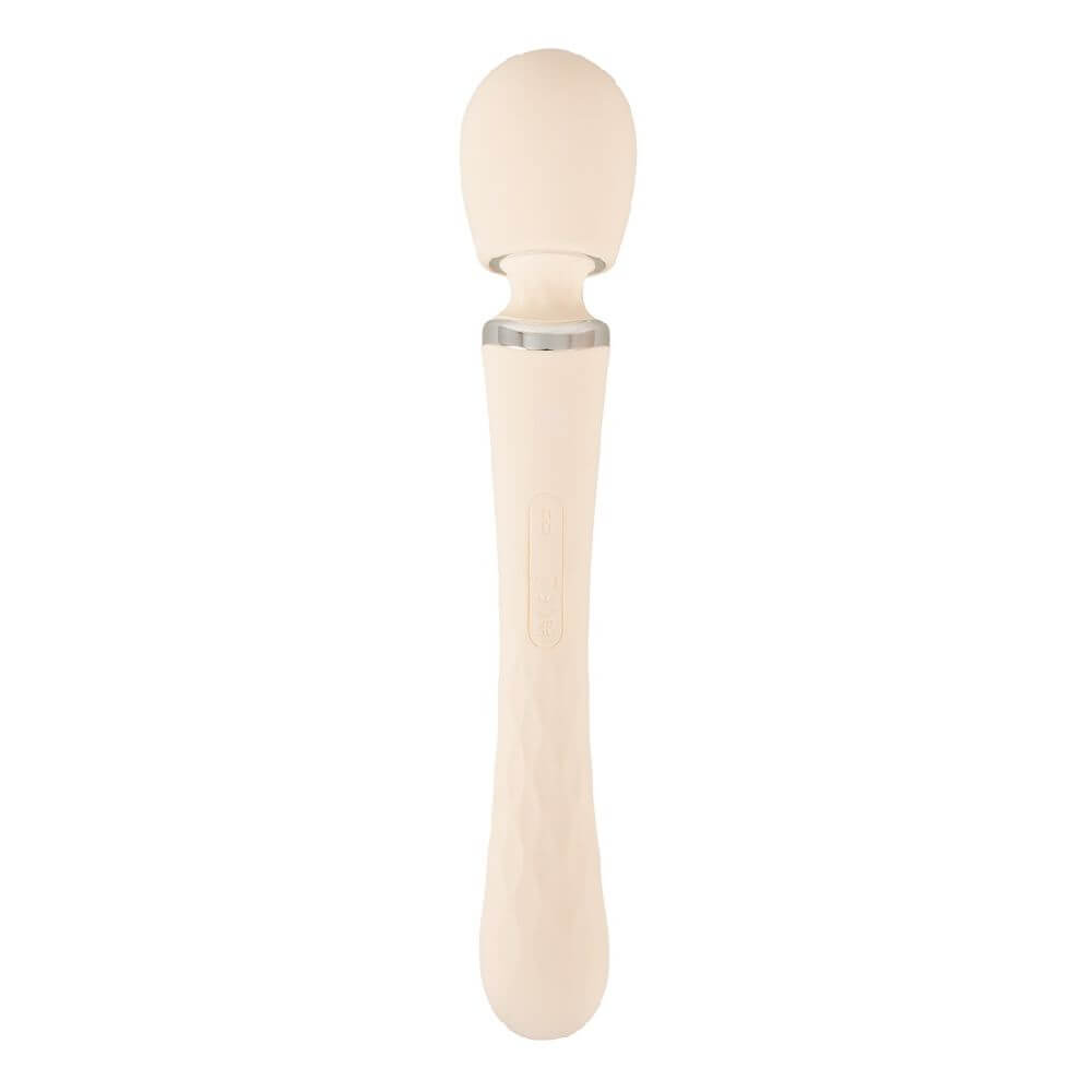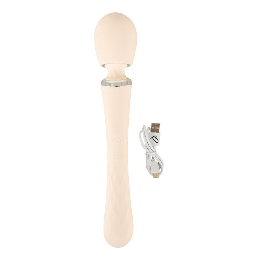 Beidseitig verwendbarer Big Wand Massager TAVIRO von beau cœur im ergonomischen Design für die äußere und innere Stimulierung. Sein vibrierender Massagekopf verwöhnt erogene Zonen am ganzen Körper. Sein langer Griff dient auch als Vibrator, der vaginal oder anal eingeführt werden kann. Schlank, elegant und zu allem bereit – allein oder zu zweit!