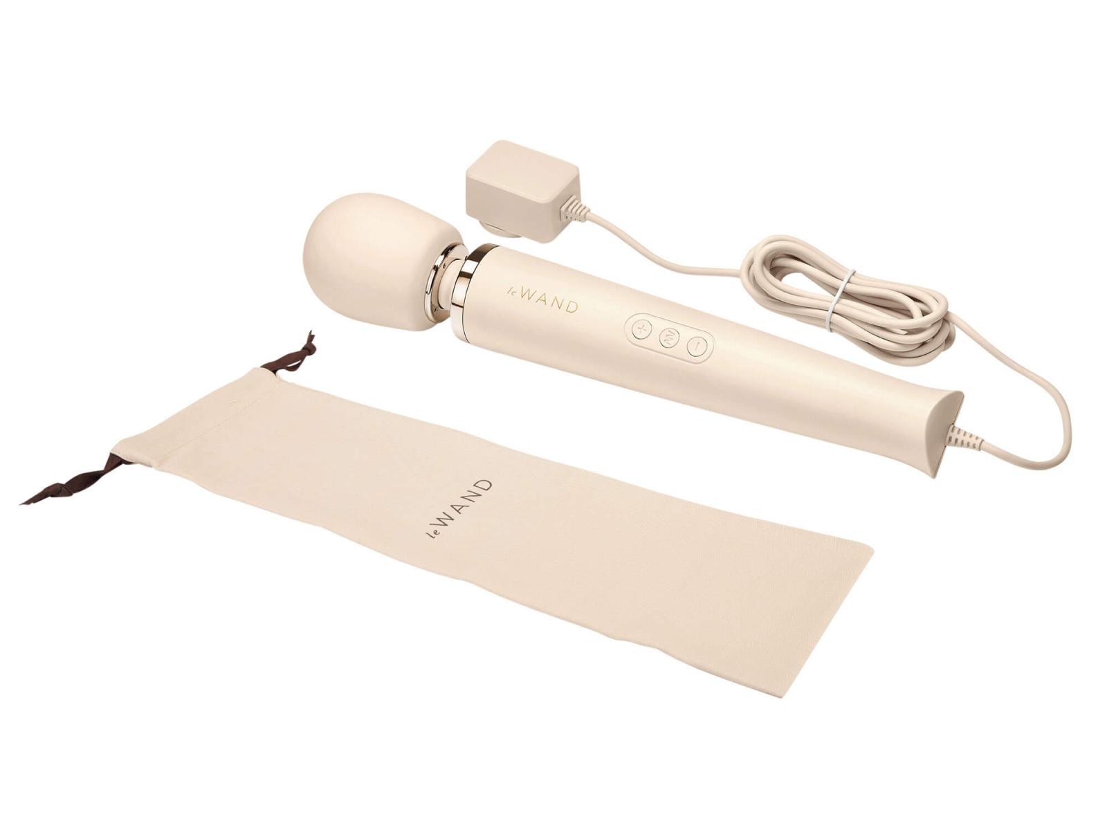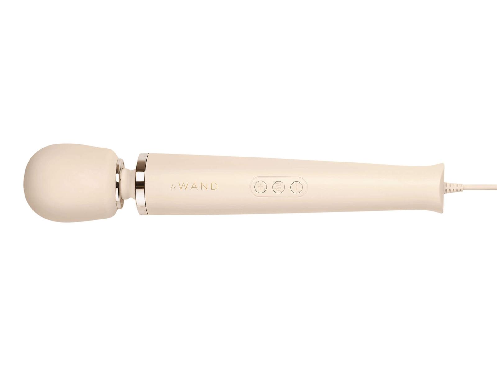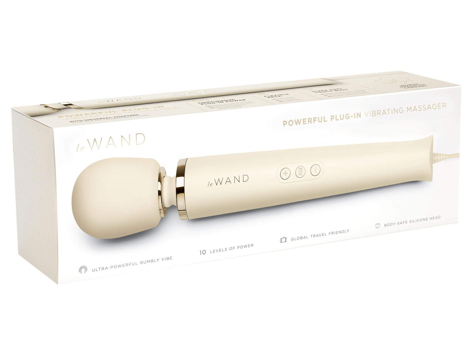 Strombetriebener Luxus-Massagestab Powerful Plug-In Vibrating Massager von Le Wand für intensiven Massagespaß mit Power nonstop. 6 Vibrationsmodi in 10 Intensitäten sorgen für individuelle Massagelust und sind mit der 3-Button-Steuerung am Griff bequem steuerbar.