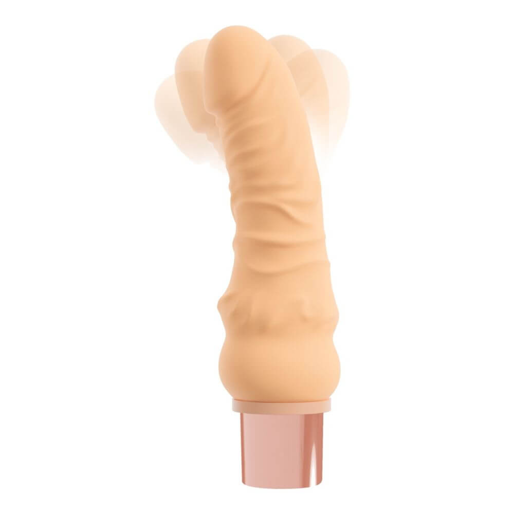 Mit seinen prallen Maßen füllt der SELON-Naturvibrator angenehm aus. Ideal gebogen, erreicht seine nickende Eichel optimal die vaginale G-Zone, um mit klopfenden Impulsen gezielt zu stimulieren. Gleichzeitig bewegt sich der Moving-Ring im Schaft automatisch rauf und runter. 12 Modi bieten dabei für jede Lust den richtigen Level. Die praktische Memory Funktion merkt sich dann beim Abschalten des Vibrators den letzten (Lieblings-)Modus. Das supersofte hautähnliche TPE-Material gleitet wie von selbst und nimmt die Körpertemperatur schnell an. Für ein gefühlsechtes, besonders sinnliches Erlebnis!