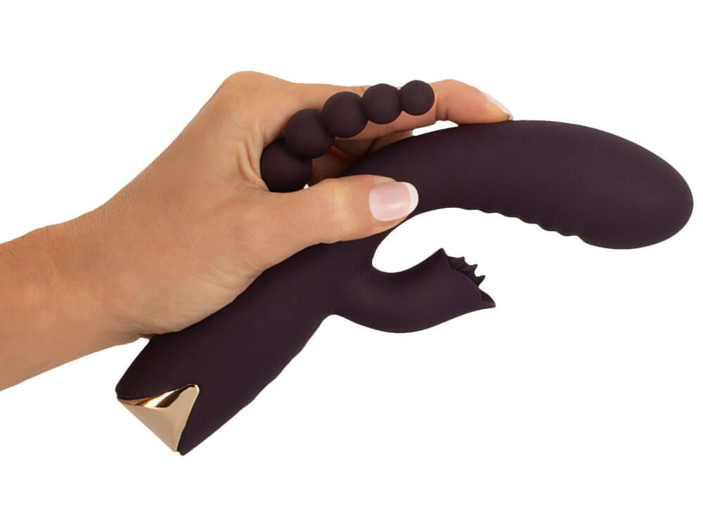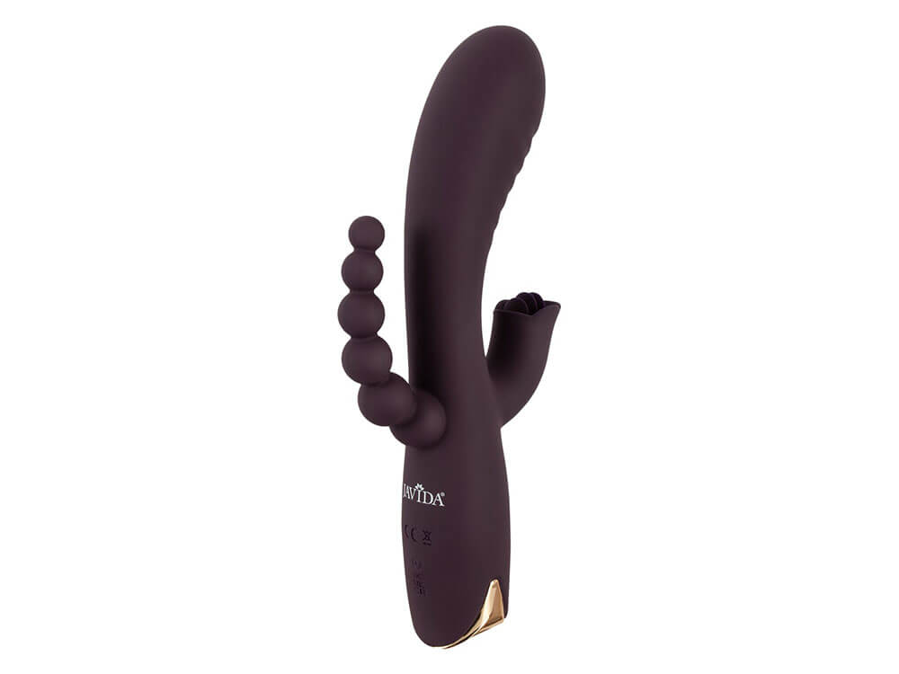 Der elegant geschwungene Rabbitvibrator mit Analstimulator Triple Vibrator von Javida verwöhnt vaginal, klitoral und anal zugleich.